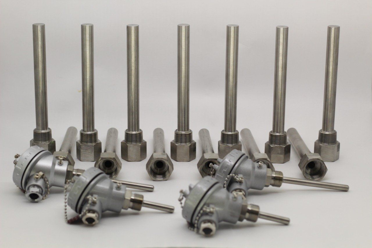 Sensor Pt-100 com transmissor de sinal e poço de proteção